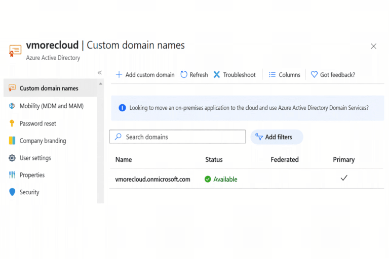 When you create a new tenant in Microsoft Azure, it automatically includes a default domain such as: yourtenant.onmicrosoft.com This initial domain is created when the tenant is deployed through Microsoft Entra ID (formerly Azure Active Directory). The default domain cannot…
