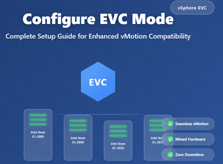 As virtualization environments grow and evolve, IT administrators face a common challenge: maintaining workload mobility across ESXi hosts with different CPU generations. This is where Enhanced vMotion Compatibility (EVC) becomes essential. In this comprehensive guide, I’ll walk you through everything you need to know about configuring EVC mode in VMware vSphere, based on real-world experience and best practices.